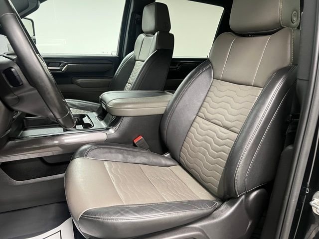 Inside, the truck features a refined and modern cabin with leather-appointed seating, heated front seats, a heated steering wheel, a 12.3-inch digital driver display, and a large 13.4-inch touchscreen infotainment system with Apple CarPlay and Android Auto. Additional features include navigation, Bluetooth connectivity, premium audio system, wireless charging, backup camera, parking sensors, and advanced driver-assistance technology.