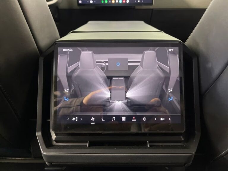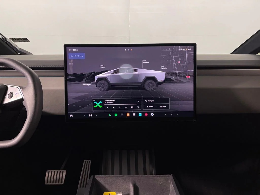 Inside, the Cybertruck features a modern minimalist interior with a large 18.5-inch touchscreen infotainment system, premium audio system, wireless connectivity, navigation, and advanced driver-assistance features. Additional highlights include adaptive air suspension, a panoramic glass roof, a powered tonneau cover, multiple power outlets, and a spacious cargo bed (“Vault”) designed for utility and durability.